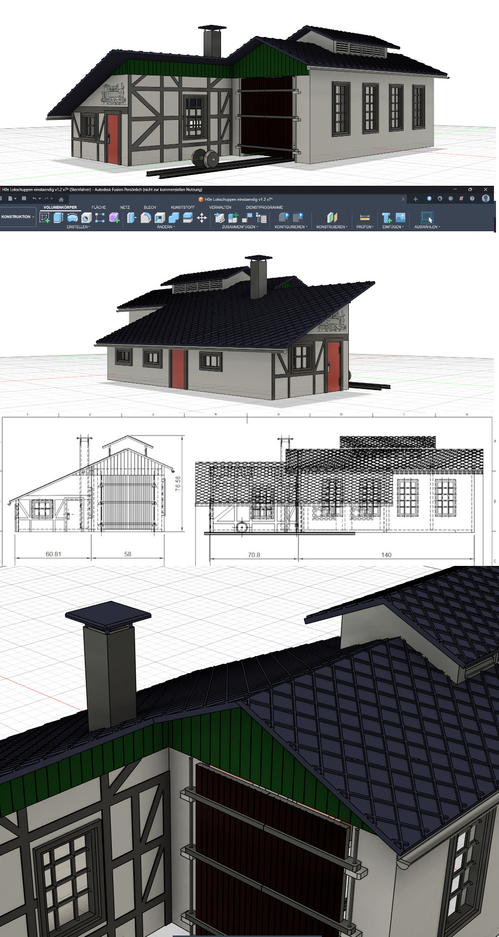 Während in Irgendwo auf die Lieferung der letzten Dachteile für den kleinen Lokschuppen der Schmalspurbahn H0e gewartet wird, ist man im benachbarten Nirgendwo schon ein gutes Stück weiter. Dort entsteht gerade eine neue Werkstatt für Lkw – ein Projekt, das in seiner ganzen Architektur unverkennbar aus der 3D-Design-Werkstatt von Irgendwo stammt, aber in einigen Details speziell an die Bedürfnisse von Nirgendwo angepasst wurde.